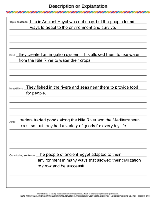 Writing Task: Write an informational paragraph explaining ways the people of Ancient Egypt adapted to their environment and successfully created a civilization.